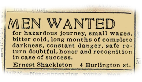 - What is your equivalent of Ernest Shackleton’s Times Job advert?