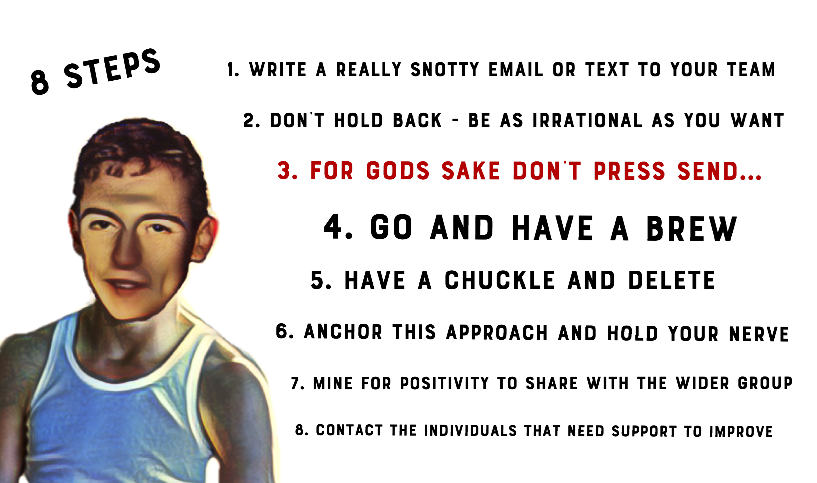 it’s easy to say don’t get stressed or emotional/ As an added extra, here is what I do when I am frustrated with team performance or under pressure…