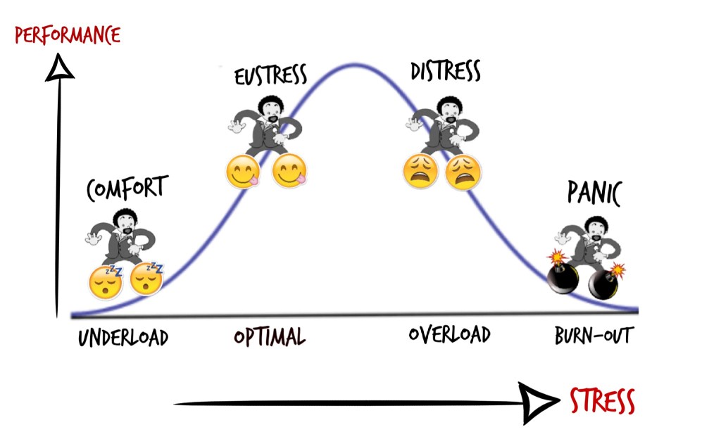 - Distress. This is where you have too much pressure and task, leading to overload. This results in a decline in performance. Remember, overload could be affected by your work or personal environment.