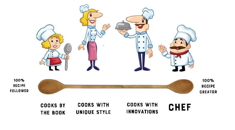 Introducing the culinary scale. The culinary scale gives us a clear view on the steps from the 100% recipe follower cook to the 100% recipe creator chef…
