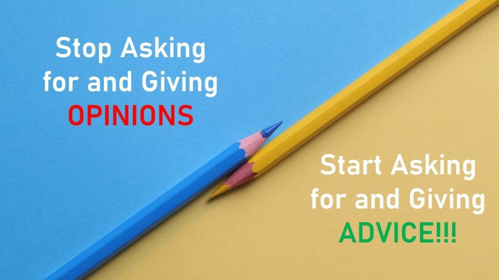 When we are asked for our ADVICE, we psychologically move 1 STEP CLOSER looking for a SOLUTION to help, rather than an often dark critique of the situation.
